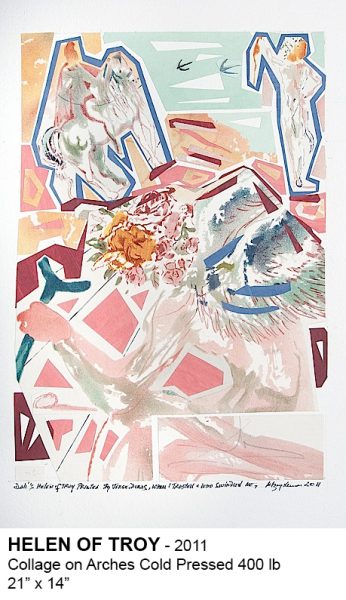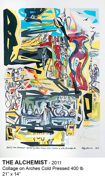 In 2011, Sznajderman did seven collages with six color lithographs by Dali that, for many reasons, were not acceptable in the art market. In these collages, Sznajderman kept the basic composition of these prints. In 2013, the collages were reproduced in the first edition of a book entitled “Dali, Dumas and Me” published by Matomi Press (Amherst, MA) with a text by Sznajderman’s son Marc. That same year, this book was presented at Chashama Exhibit Space, NYC in a one-man show for the benefit of the World Lung Foundation.