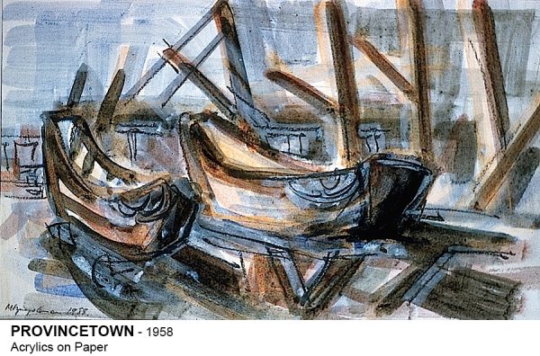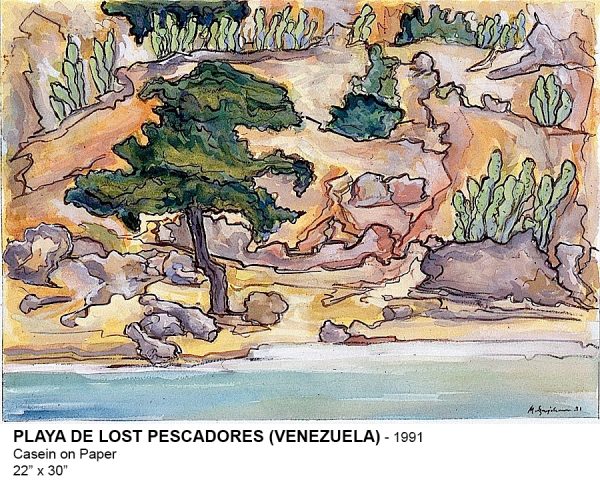 Landscapes and Seascapes In Sznajderman’s travels and visits to many sites, sketches were made from which, eventually, paintings and collage constructions were executed later in the studio.